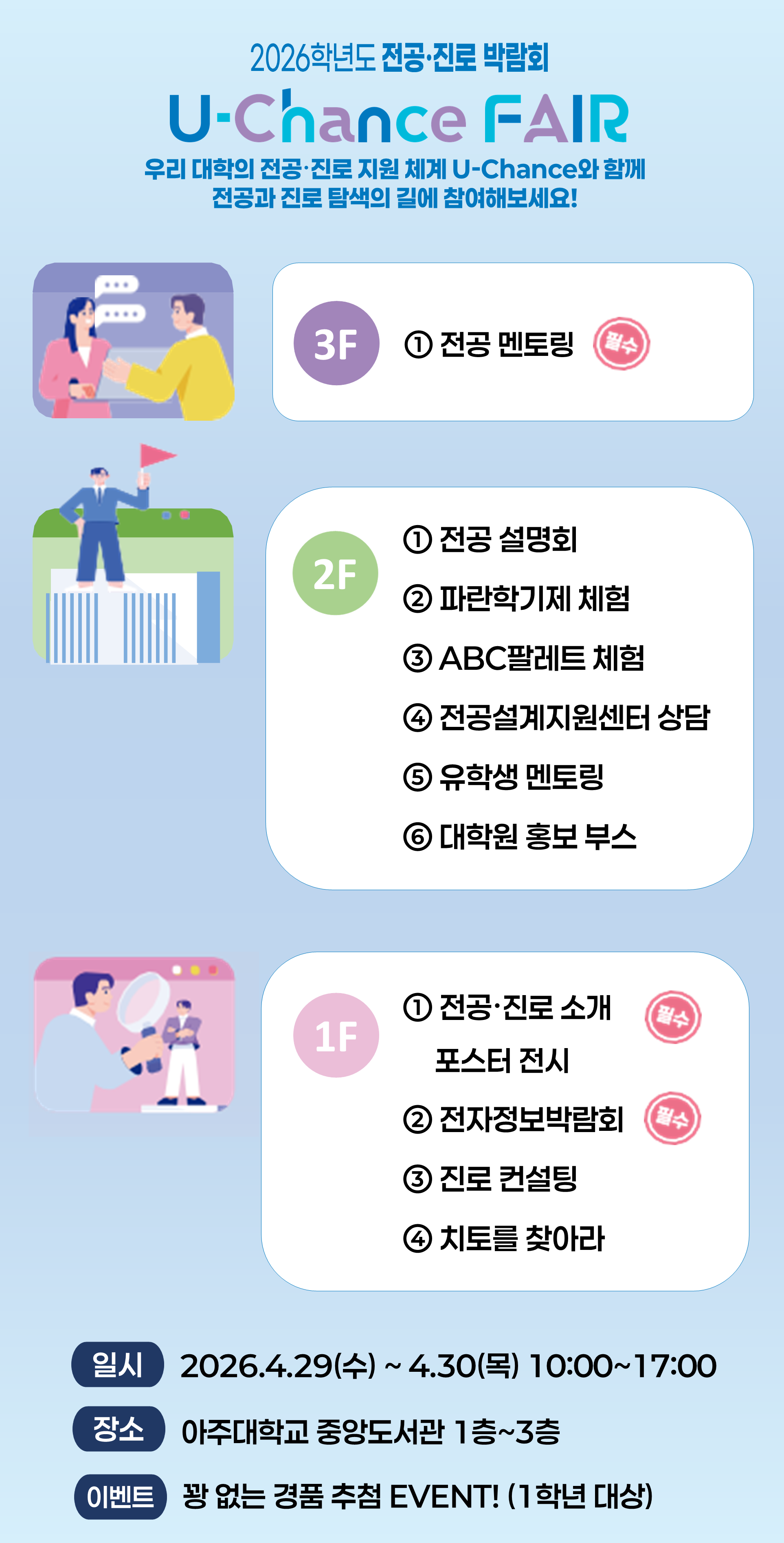 [ํ–‰์‚ฌ] ๐Ÿ˜Ž๋‚ด์ผ 10์‹œ๋ถ€ํ„ฐ ์‹œ์ž‘๐Ÿ˜Ž[๊ต์œกํ˜์‹ ํŒ€] ๐ŸฉตU-Chance FAIR ๐Ÿฉต: 2026 ์ „๊ณตยท์ง„๋กœ ๋ฐ•๋žŒํšŒ ๊ฐœ์ตœ (4/29~30)